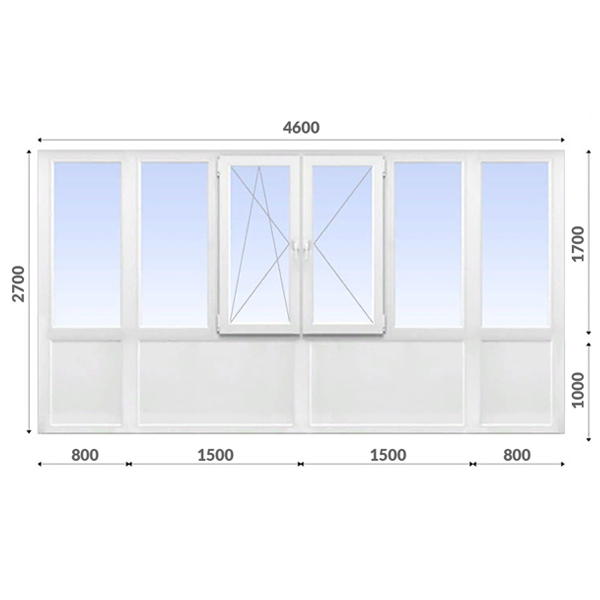 Французский балкон 2700x4600 Rehau 60 мм 2-камерный стеклопакет